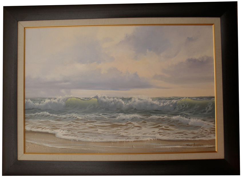 His love of the sea started as a young surfer in 1970. This is evident in him capturing the mood and movement in his seascapes.